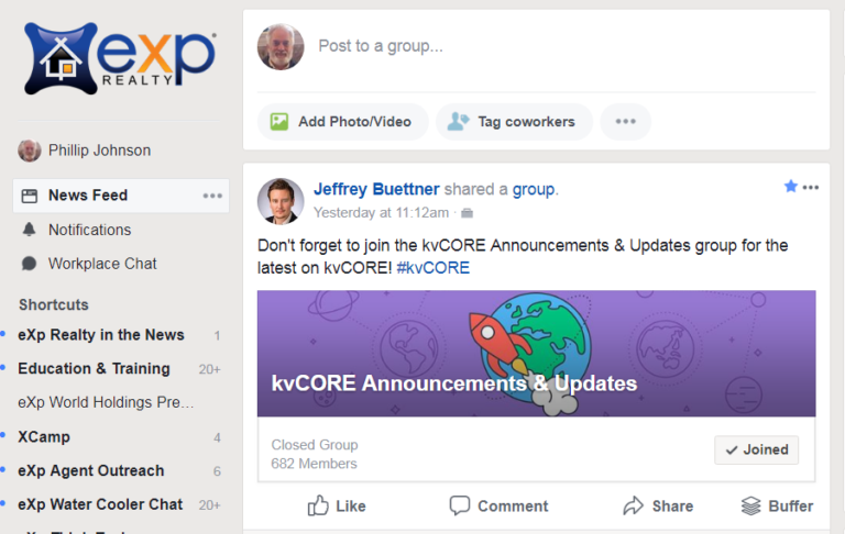 eXp Realty created a Facebook Workplace which is basically an intranet for our agents to communicate in private groups that is STRICTLY eXp Realty.